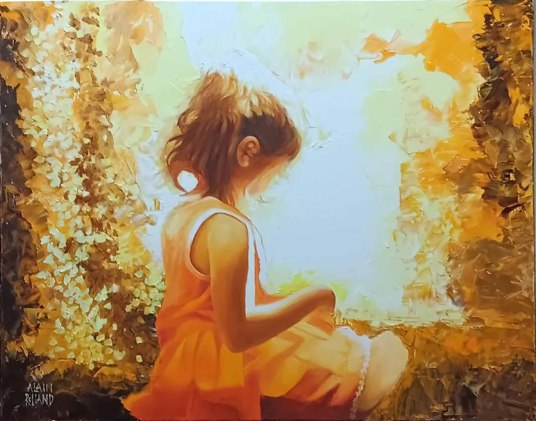 L'ENFANT AU SOLEIL : Huile sur toile Format 100 x 100 cm