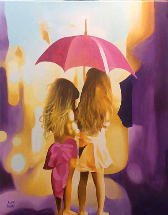 Sous leur parapluie : Huile sur toile 72 x 93 cm