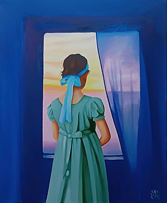 Devant sa fenêtre : Huile sur toile : 100 x 81 cm