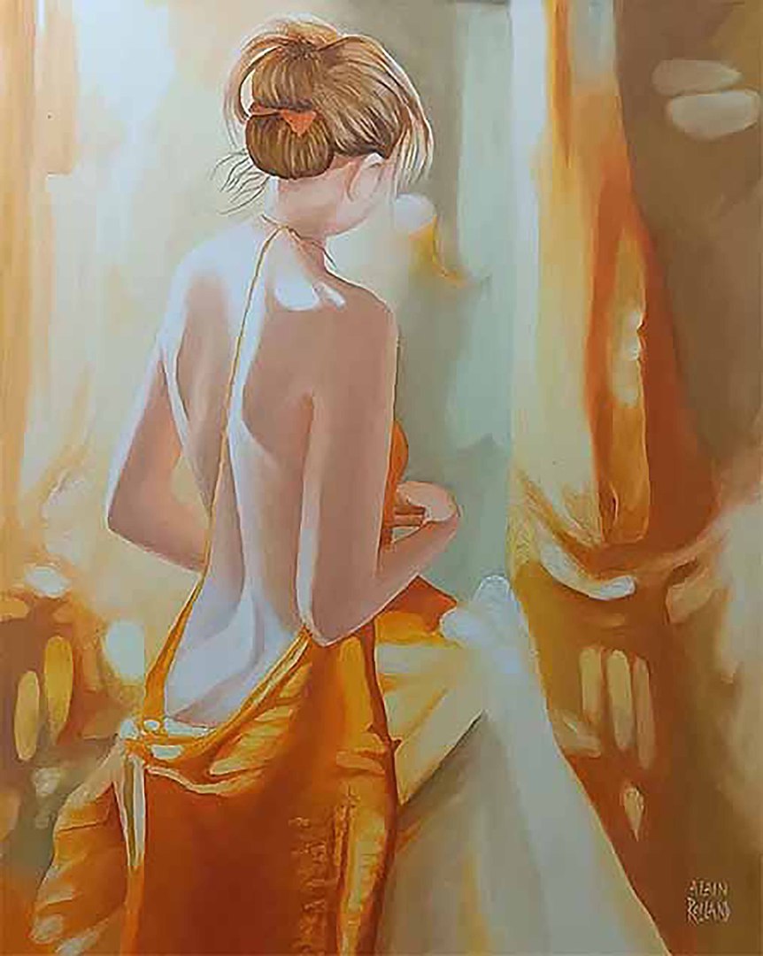 Elle bronze au soleil : Huile sur toile 70 x 70 cm