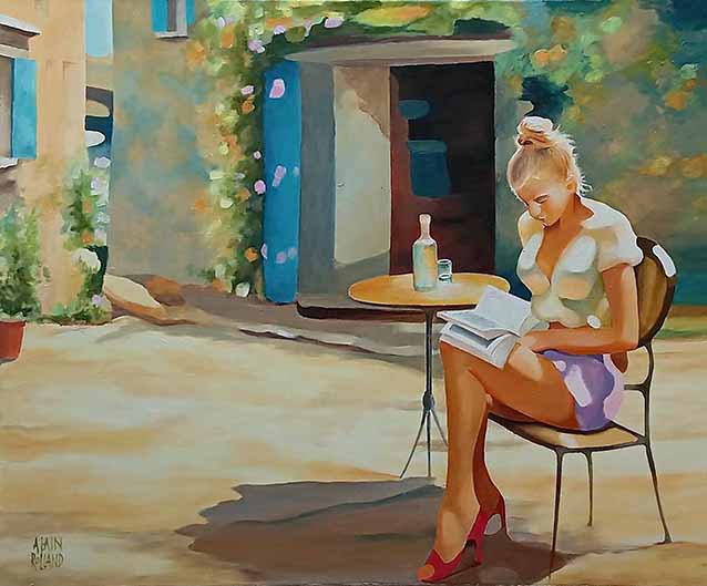 La liseuse du lac : Huile sur toile 100 x 100 cm