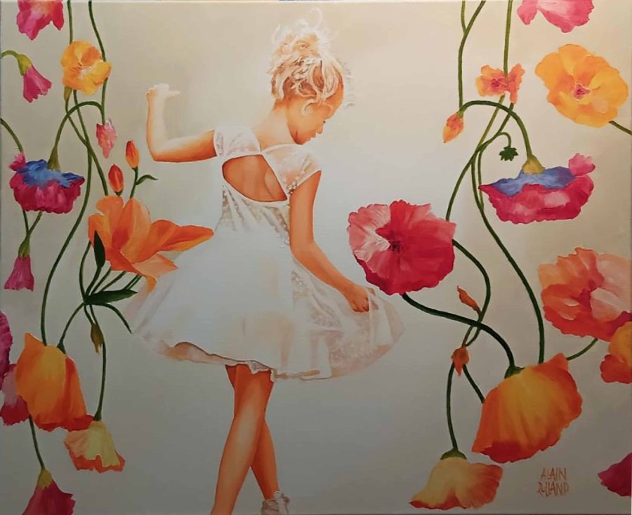 La jeune fille dans les fleurs : Huile sur toile 160 x 120 cm