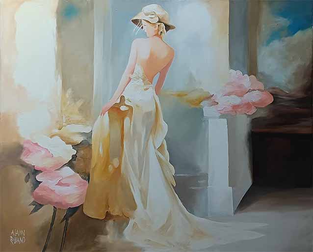 La Diva et la rose : Huile sur toile 92 x 73 cm